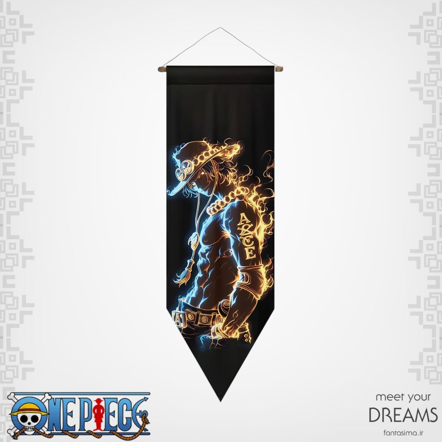 ابعاد : 78*29 سانتیمتر جتس : مخمل آستر دار  دور دوخت  دارای چوب و طناب آویز    پورتگاس دی. ایس (Portgas D. Ace) یکی از محبوب‌ترین و تأثیرگذارترین شخصیت‌های انیمه و مانگای وان پیس است که توسط ایچیرو اودا خلق شده است. در ادامه، یک متن کامل و توصیفی درباره این شخصیت ارائه می‌دهم: پورتگاس دی. ایس، ...ادامه مطلب