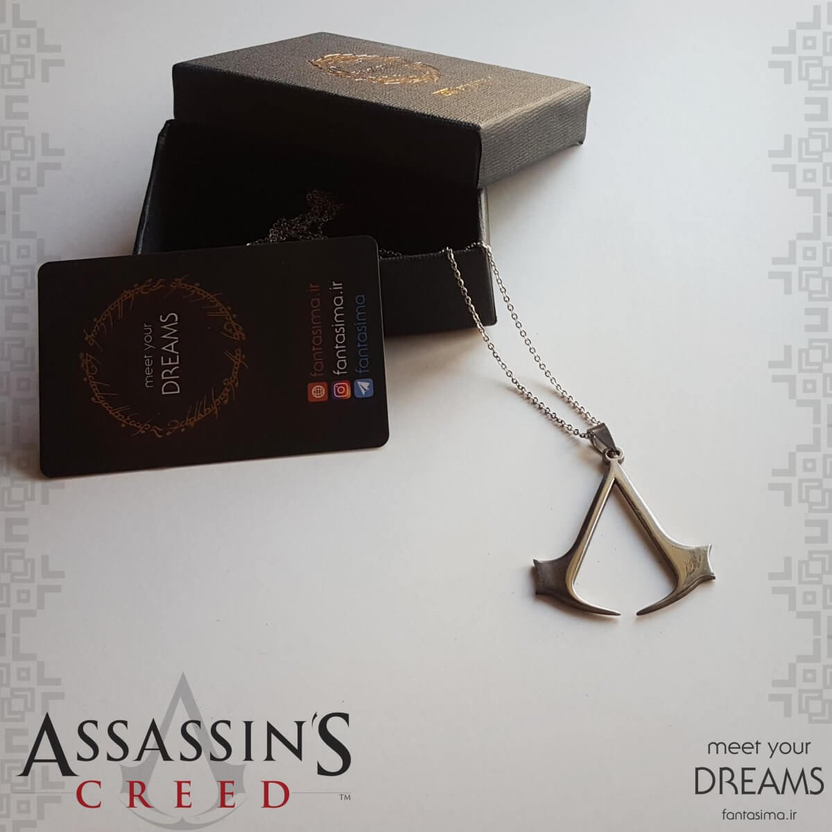 سفارش گردنبند استیل نماد اساسینز کرید با طرح اساسین کرید. مناسب برای علاقه مندان اساسین کرید. تضمین کیفیت.