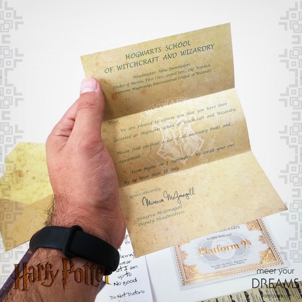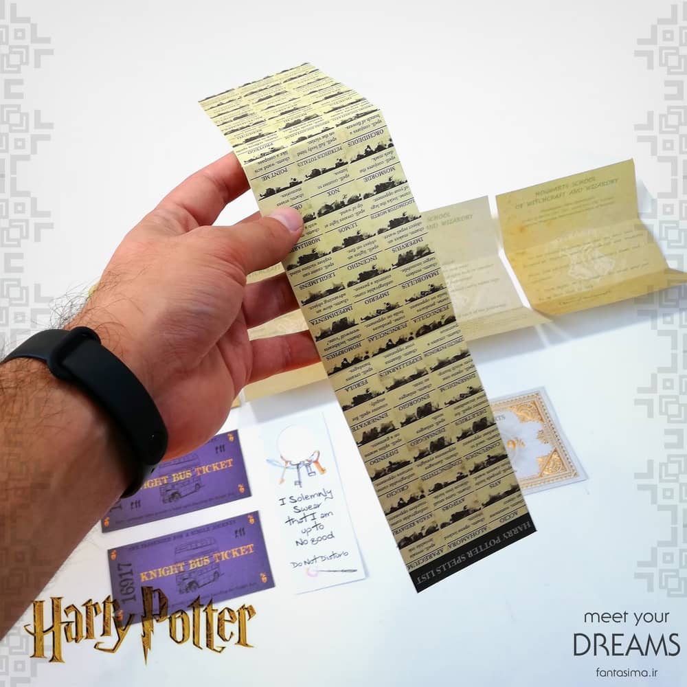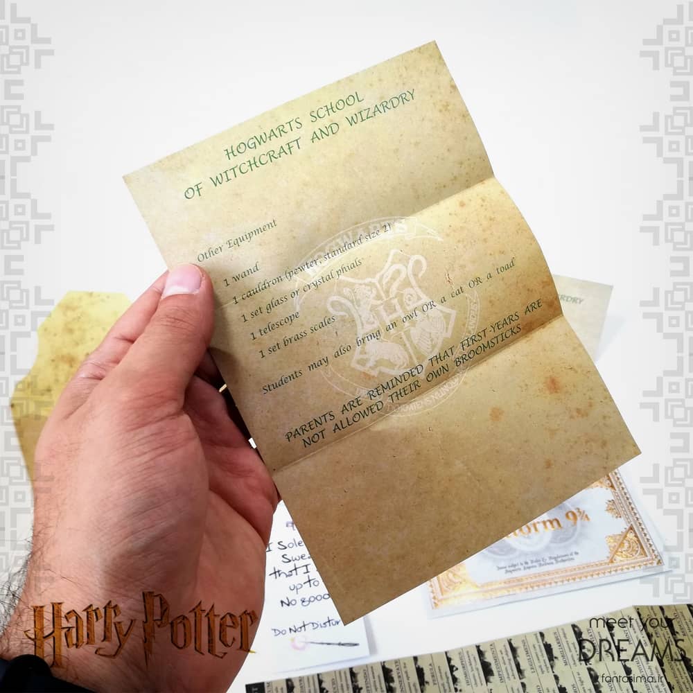 این نامه شامل 3 صفحه دعوت نامه ملزومات و موارد دیگر می باشد و همچنین 1 بلیط سکوی 3/4 طلاکوب - برای سفر ...