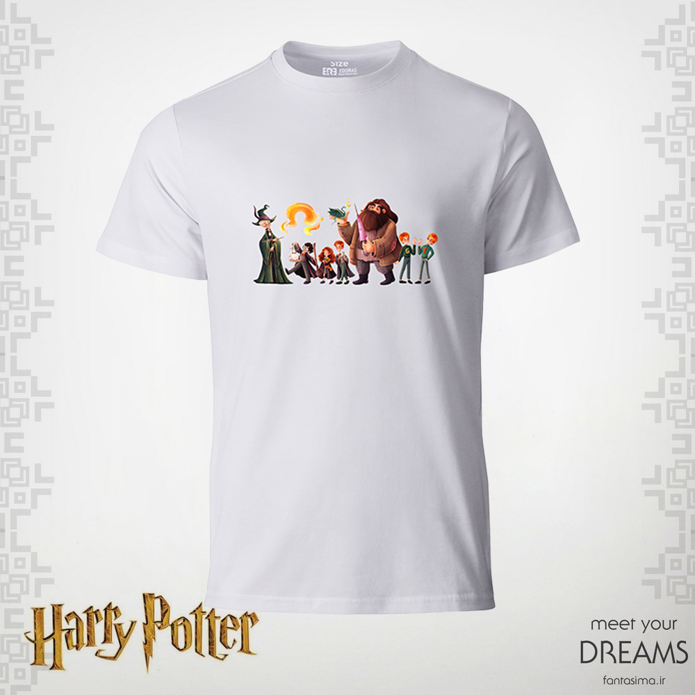 یه تیشرت پر از خاطره از دنیای جادویی هاگوارتز! ? روی این تیشرت همۀ رفقای محبوبمون جمع شدن — فرد و جورج با لبخندهای شیطنتآمیزشون، هاگرید با اون قلب بزرگش، هری و هرماینی و رون وسط ماجرا، و البته پروفسور مکگونگال همیشه جدی و باوقا ...