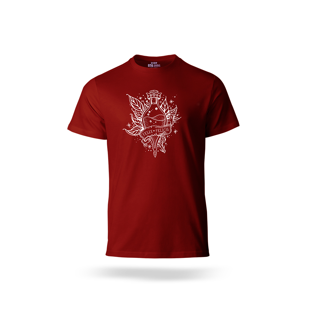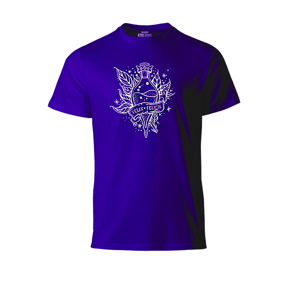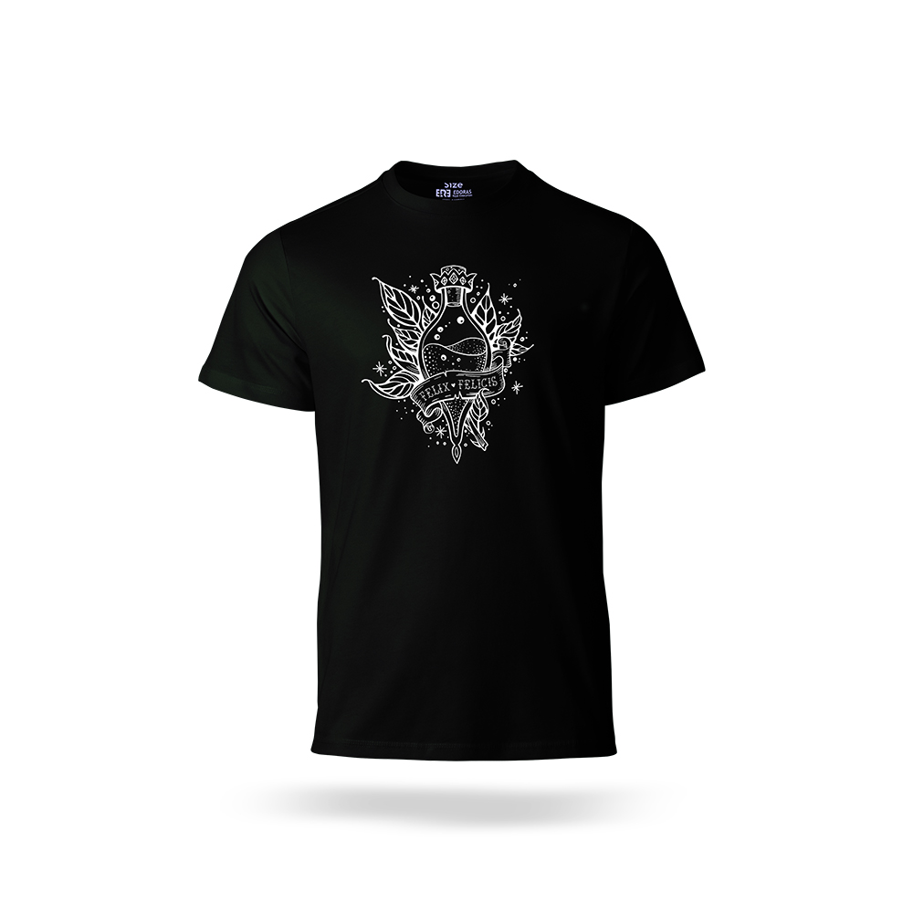 فلیکس فلیسیس یا همان Liquid Luck، معجون افسانهای خوششانسی در دنیای هری پاتر است. نوشیدنیای که مصرفکنندهاش را برای مدتی کوتاه به خوششانسی مطلق مجهز میکند. طرح این تیشرت، بطری درخشان فلیکس فلیسیس را با جزئیات دقیق به تصویر میکشد؛ نمادی از انرژی مثبت، امید و بخت یار بودن. هر بار که آن را میپوشید، انگار بطری کوچکی از شانس همراهتان است.